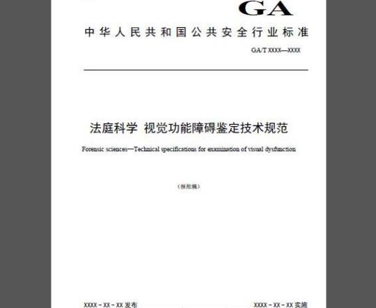 标准名称:法庭科学 视觉功能障碍鉴定技术规范