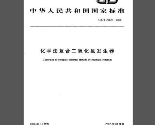 本标准适用于各种水体的杀蓝、消毒灭藻、除臭、漂白,脱色及氧化等处理的化学法复合二氧化氯发生器。