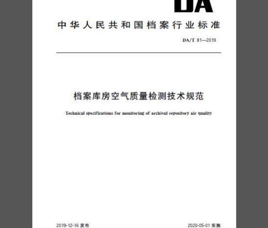 档案库房空气质量检测技术规范本标准给出了档案库房空气质量检测的方法。DA/T81—2019