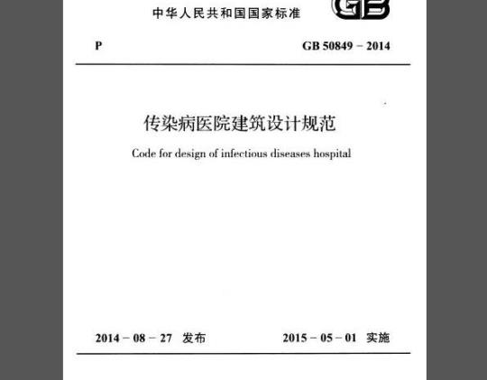 住房城乡建设部关于发布国家标准《传染病医院建筑设计规范》的公告现批准《传染病医院建筑设计规范》为国家标准,编号为GB50849—2014,2015年5月1日起实施。其,第1.1.3、5. 2. 4,5. 3. 2.5. 5. 2.5. 5. 6,5. 5. 9、5. 7. 1(1)、5. 8. 4,7. 1. 3、7. 1.1条(款)为强制性条文,必须严格执行本规范由我部标准定额研究所组织中国计划出版礼出版发行。中华人民共和国住房和城乡建设部2014年8月27日