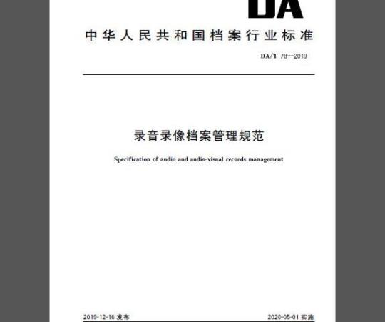 标准介绍:本标准规定了模拟信号录音录像文件和录音录像电子文件的收集、整理、著录、归档与录音录像档案管理要求。