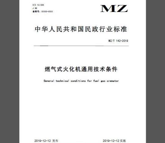 标准名称:燃气式火化机通用技术条件