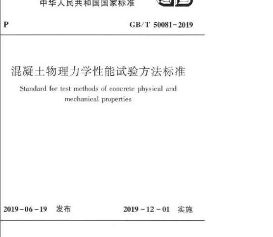 房和城乡建设部关王发布国家标准《混凝土物理力学性能试验方法标准》的公告现批准《混凝士物理力学性能试验方法标准》为国家标准编号为GB/T50081一2019,自2019年12月1日起实施。原《普通混凝土力学性能试验方法标准》GB/T50081-2002同时废止。