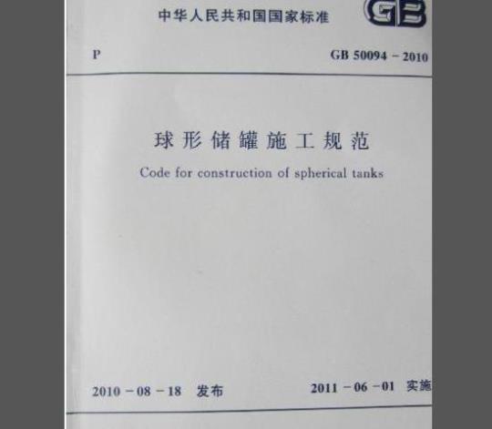 Code for construction of spherical tanksGB50094-2010