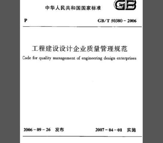 工程建设设计企业质量管理规范Code for quality management of engineering design enterprisesGB/T50380-2006