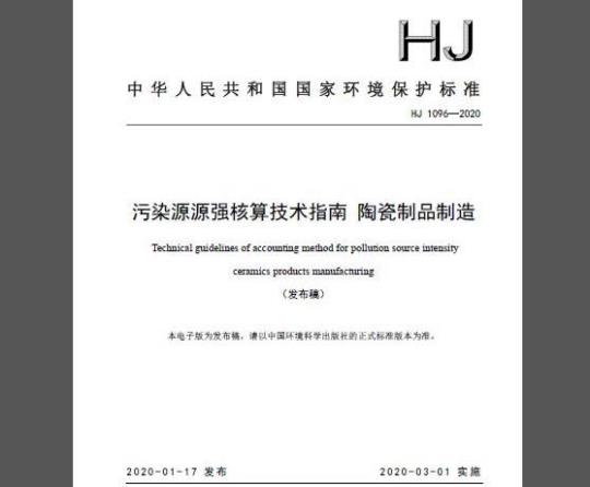 标准名称:污染源源强核算技术指南 陶瓷制品制造