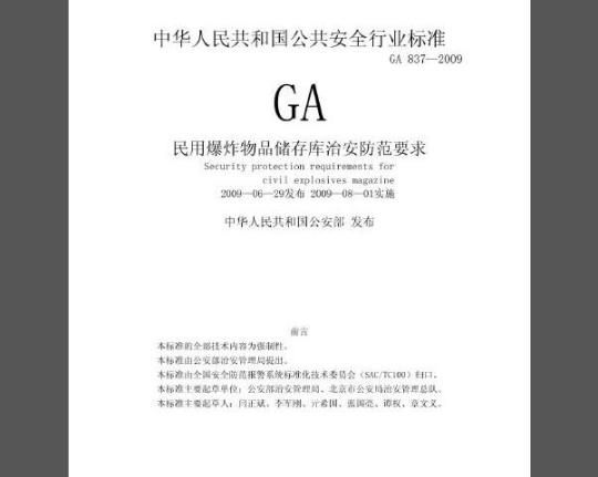 GB17565防盗安全门通用技术条件GB50089民用爆破器材工程设计安全规范GB50154地下及覆土火药炸药仓库设计安全规范GB50348安全防范工程技术规范