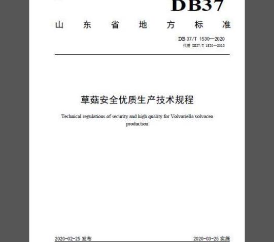 本标准DB37/T 1530-2020代替DB37/T1530-2010《秸秆栽培草菇生产技术规程》。与DB37T1530-2010相比,除编辑性修改外主要技术变化如下: