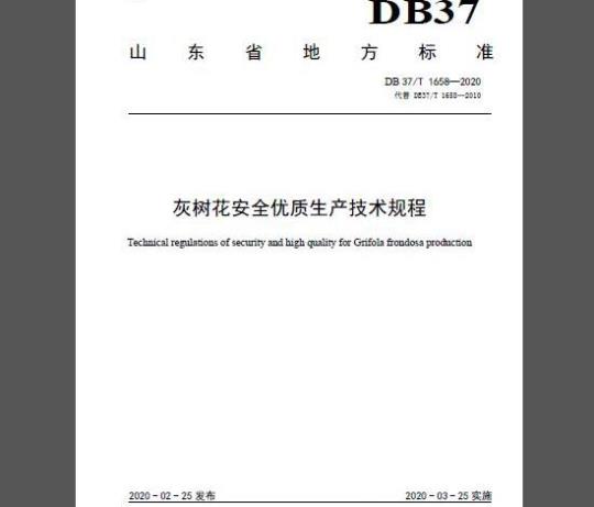 标准介绍:本标准DB37/T 1658-2020规定了灰树花( Grifola frondosa)的质量要求、产地环境、生产技术、病虫害防控、质量