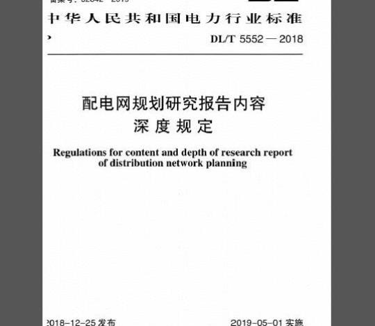 Regulations for content and depth of research reportof distributionnetworkplanningDL/T5552-2018