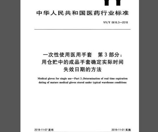 标准名称:一次性使用医用手套 第3部分:用仓贮中的成品手套确定实际时间失效日期的方法