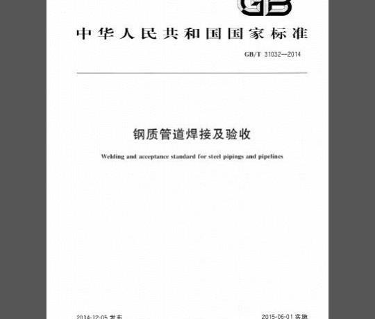Welding and acceptance standard for steel pipings and pipelines2014-12-05发布