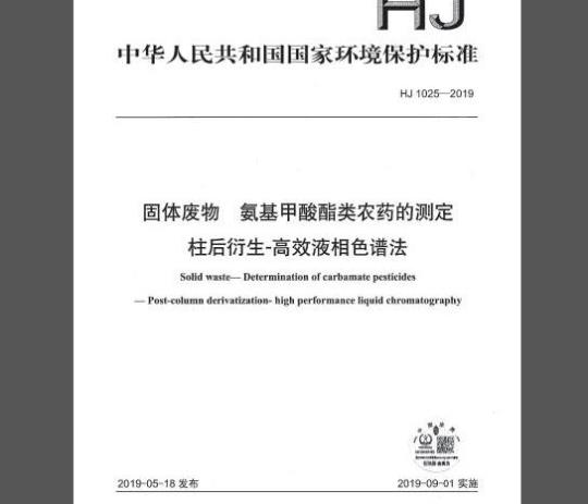 为贯彻《中华人民共和国环境保护法》和《中华人民共和国固体废物污染环境防治法》,保护生态环境,保障人体健康,规范固体废物及其浸出液中氨基甲酸酯类农药的测定方法,制定本标准。本标准规定了测定固体废物及其浸出液中10种氨基甲酸酯类农药的柱后衍生高效液相色谱法本标准的附录A为规范性附录,附录B为资料性附录。