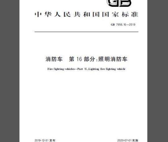 标准名称:消防车 第16部分:照明消防车