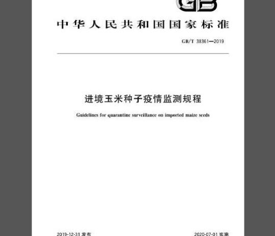 标准介绍:本标准规定了进境玉米种子种植后的监测对象、监测时期、监测方法等内容。