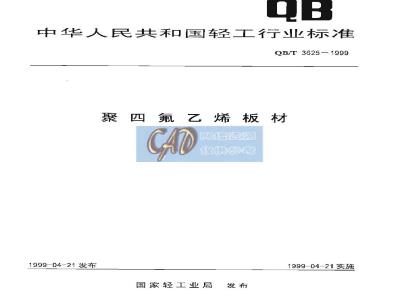 本标准是原轻工专业标准ZB/TG33002一1985《案四氧乙烯板材”,经由国轻行【1999】112号文发布转化标准号为QB3625—1999,内容同前。本标准由原中华人民共和国轻工业部提出。本标由全国塑料制品标准化中心归口。本标准由上海化工厂、上海市塑料研究所、墨光化工研究院三分厂、武汉塑料五厂负资起草本标准主墓起草人:俞美玲、徐月薇、刘松林、王辉葬、杨雪芬CAD