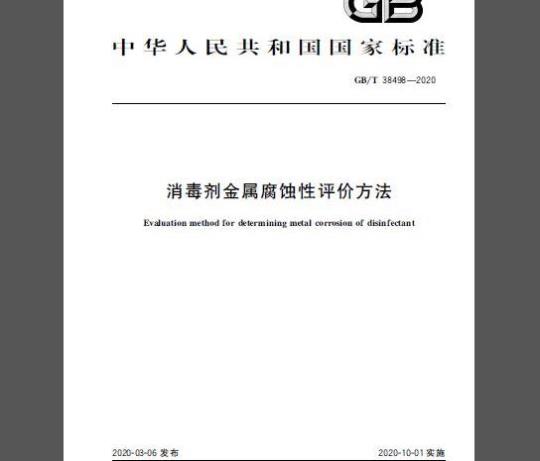 英文名称:Evaluation method for determining metal corrosion of disinfectant