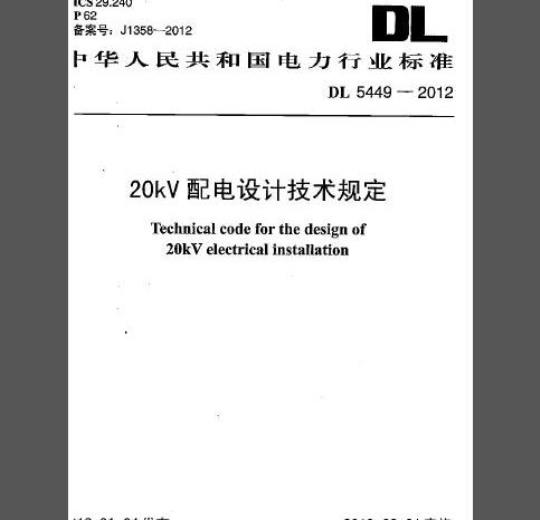 Technical code for the design of20k V clcctrical installationDL 5449--2012