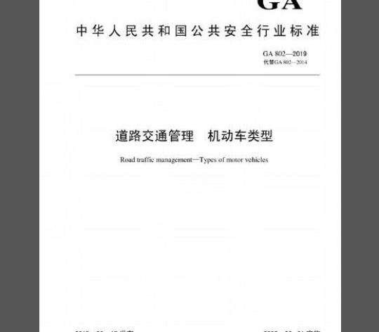 本标准代替GA802-2014《机动车类型术语和定义》。与GA802-2014相比,除编辑性修改外主要技术变化如下: