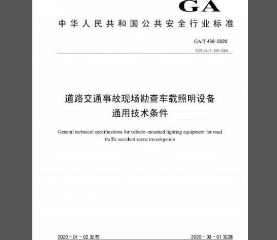 英文名称:General technical specifications for vehicle-mounted lighting equipment for road traffic accident scene investigation