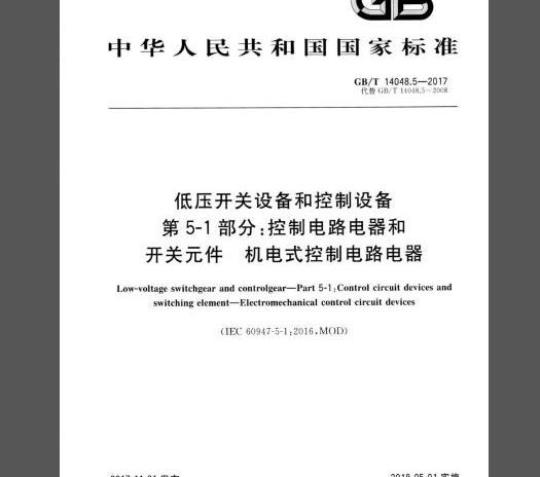 标准介绍:《低压开关设备和控制设备》的本部分适用于在开关设备和控制设备中作控制、信号指示、联锁等用途的控制电路电器和开关元件。