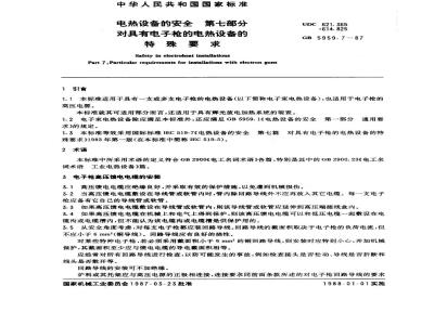 本标准适用于具有一支或多支电子枪的电热设备(以下简称电子束电热设备),也适用于电子枪的高压电源。本标准就其可适用部分而言,还适用于具有辉光放电加热系统的装置。 GB 5959.7-1987 电热设备的安全 第七部分 对具有电子枪的电热设备的特殊要求 GB5959.7-1987 标准下载解压密码:www.bzxz.net