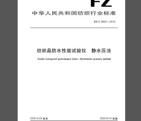 标准介绍:本标准规定了纺织品防水性能试验仪的术语和定义、基本功能和参数、要求、试验方法、检验规则及标志、包装、运输和贮存。
