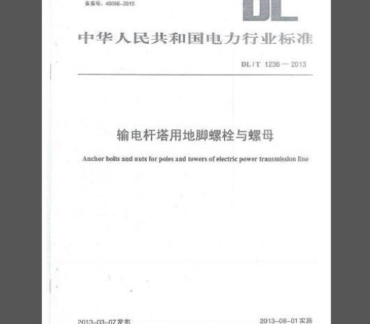 标准名称:输电杆塔用地脚螺栓与螺母