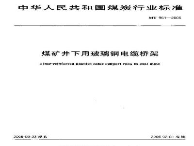 本标准规定了煤矿井下用玻璃钢电缆桥架(以下简称电缆桥架)的产品分类、要求、试验方法、检验规则、标志、包装和贮运。本标准适用于煤矿井下敷设电缆用的玻璃钢电缆桥架。 MT 961-2005 煤矿井下用玻璃钢电缆桥架 MT961-2005 标准下载解压密码:www.bzxz.net