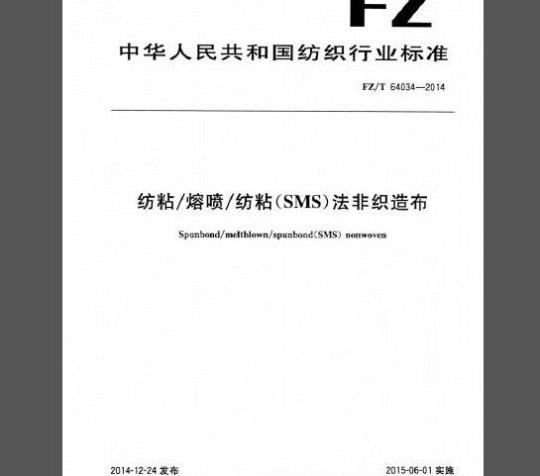 标准介绍:本标准规定了纺粘/熔喷/纺粘(SMS)法(纺粘熔喷可以是一层或多层)非织造布(以下简称SMS)的技术要求、试验方法、检验规则、包装、标志、贮存和运输。
