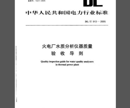 火电厂水质分析仪器质量验收导则本标准规定了火电」常用的水质分析仪器,包括:电导率仪、酸度计、钠离子监测仪、溶解氧分析仪、硅酸根分析仪五种水质分析仪器的质量验收条件、验收规则与验收内容。本标准适用于新购置的国产与进口水质分析仪器的质量验收,也适用于已投产使用的水质分析仪器在应用中的质量检查验收。