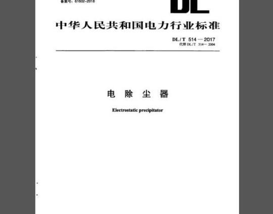 标准介绍:本标准代替DLT5142004《电除尘器》。本标准与DLT514-2004相比,除编辑性修改外主要