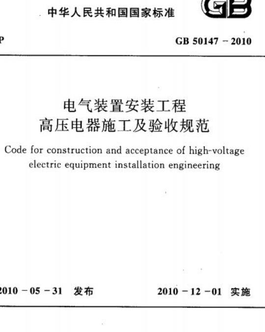 GB 50147-2010. Code for construction and acceptance of high-voltage electric equipment ins ation engineering.