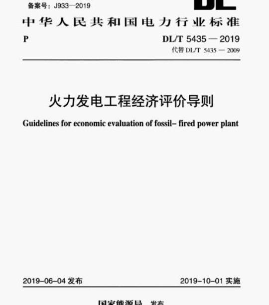 Guidelines for economic evaluation of fossil-fired power plantDL/T5435-2019