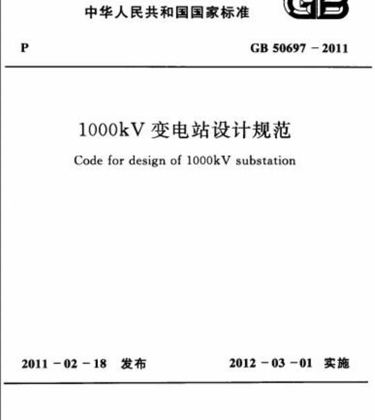 《1000kV变电站设计舰池》的公告现批准1000kV变电站设计规范》为国家标准,编号为GE50697一2011,月2012年3月1日起实施,其巾,笔11.1.2条为强制性条文,必须严格执行。