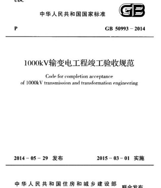 GB 50993-2014.Code for completion acceptance of 1000kV transmission and transformation engineering.