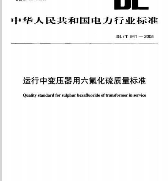 DL/T 941规定了110kV及以上运行中变压器用六氟化硫气体的质量标准。