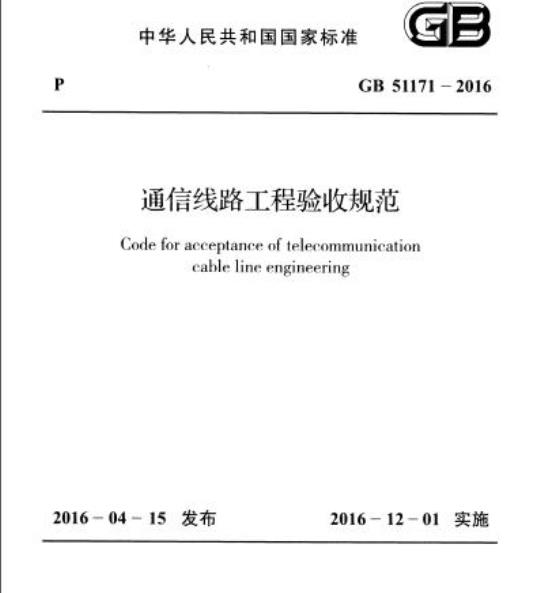 GB 51171-2016.Code for acceptance of telecommunication cable line engineering.
