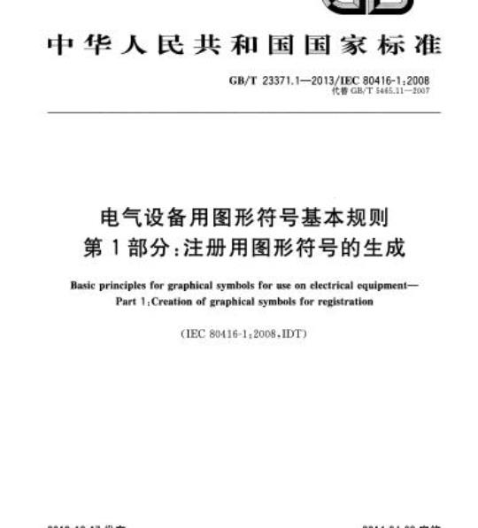 GB/T 23371.1-2013/IEC 80416-1:2008GB/T23371《电气设备用图形符号基本规则》分为4个部分:第1部分:注册用图形符号的生成;第2部分:箭头的形式与使用