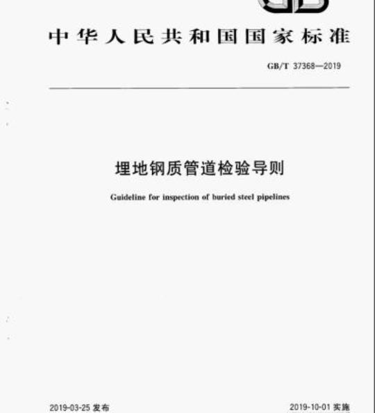 GB/T 37368规定了在用埋地钢质管道检验的工作流程、数据收集、检验方案制定、检验实施、适用性评价、基于风险的检验、记录和报告等方面的主要内容及基本要求。
