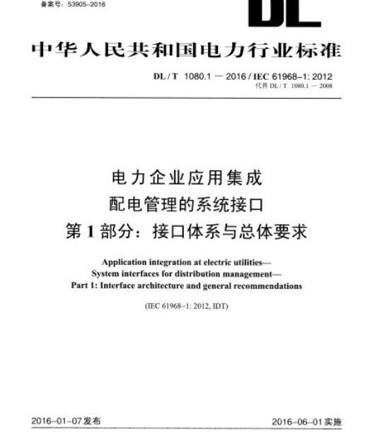 DL/T 1080.1是DL 1080标准的第1部分,整体而言,它定义了配电管理接口架构主要元素的接口。