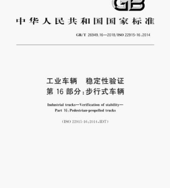 GB/T 26949.16-2018.Industrial trucks-Verification of stability-Part 16:Pedestrian-propelled trucks.