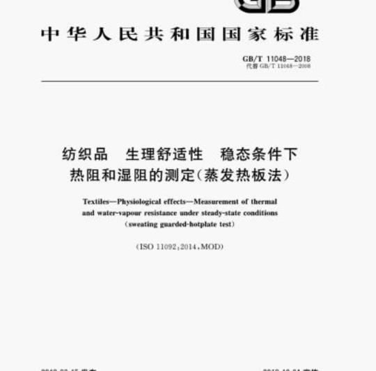 GB/T 11048规定了在稳态条件下纺织品生理舒适性的热阻和湿阻的测定方法。