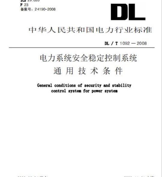 DL /T1092规定了电力系统安全稳定控制系统(以下简称为稳控系统)的基本技术要求、试验方法、检验规则、标志、包装、运输、贮存等。