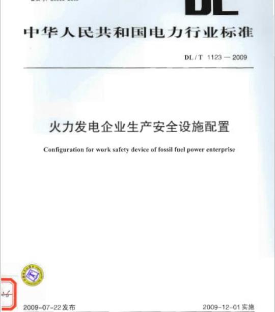 DL/T 1123规定了火力发电企业生产安全设施的基本配置要求。