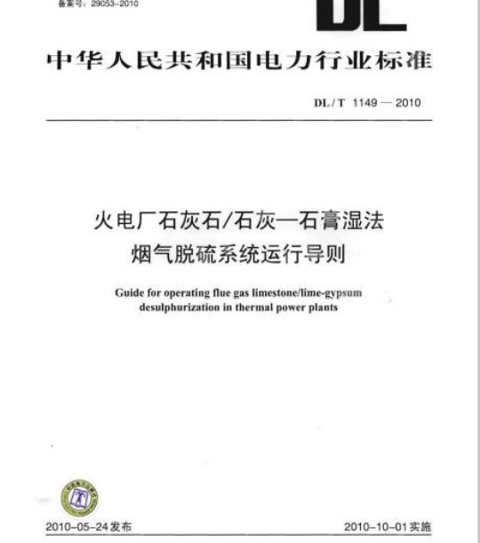 DL/T 1149规定了火电厂石灰石/石灰一石膏湿法烟气脱硫系统的启动、 运行调整、停运、定期试验和故障处理等技术要求。