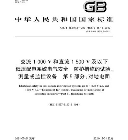 GB/T18216.5—2021/IEC61557-5:2019交流1000V和直流1500V及以下