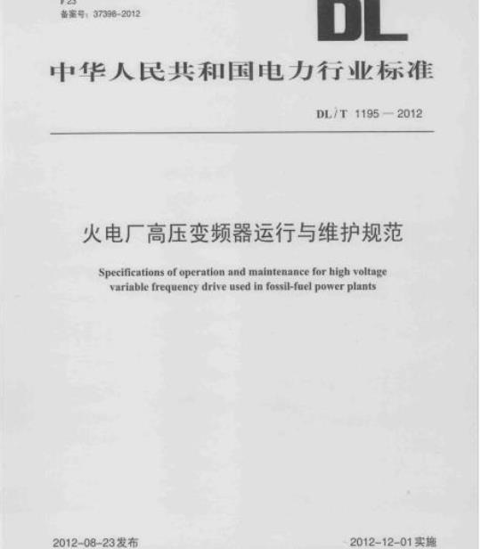 DL/T 1195规定了火电厂高压变频器成套设备的基本要求、使用条件、运行与维护方法。