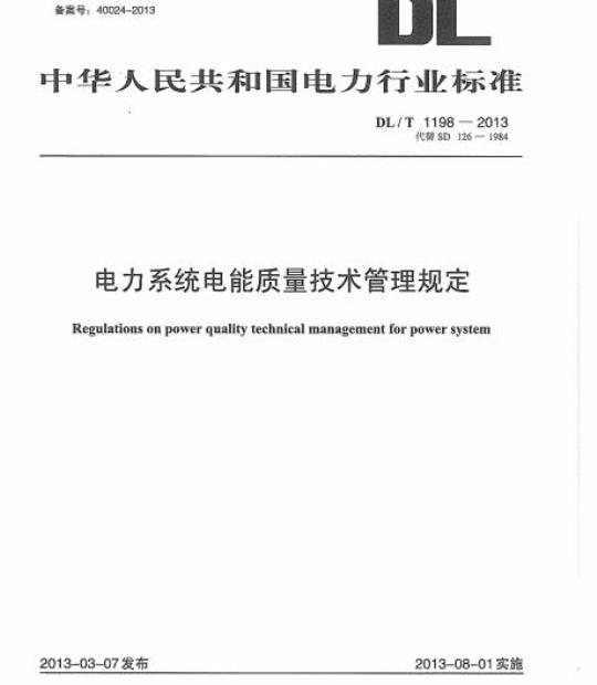 DL/T 1198规定了电力系统电能质量技术管理的内容、流程和方法。