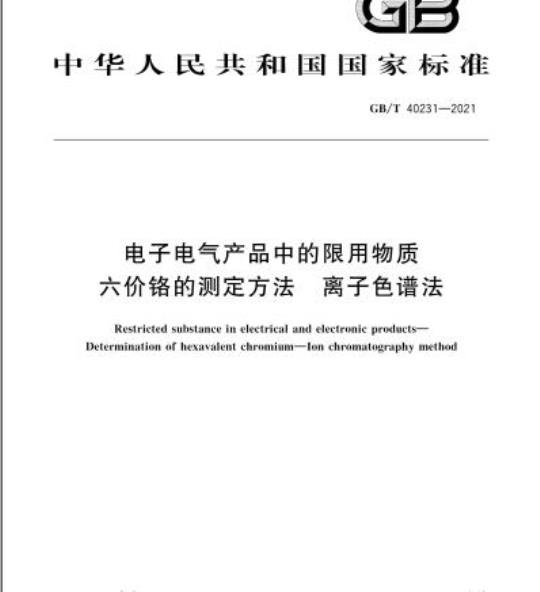 GB/T 40231规定了电子电气产品中六价铬的离子色谱测定方法。